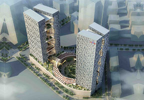 百度国际大厦位于深圳市南山区高新技术产业园,大厦高181米,建筑面积超过22万平方米,由东西两座塔楼组成,可容纳万名员工,于2012年1月16日举行奠基仪式,预计在2015年完成竣工。大厦的立面设计以“百度”的命名为灵感,将“众里寻他千百度”这句中国古词巧妙转换为“二进制代码”的现代计算机语言